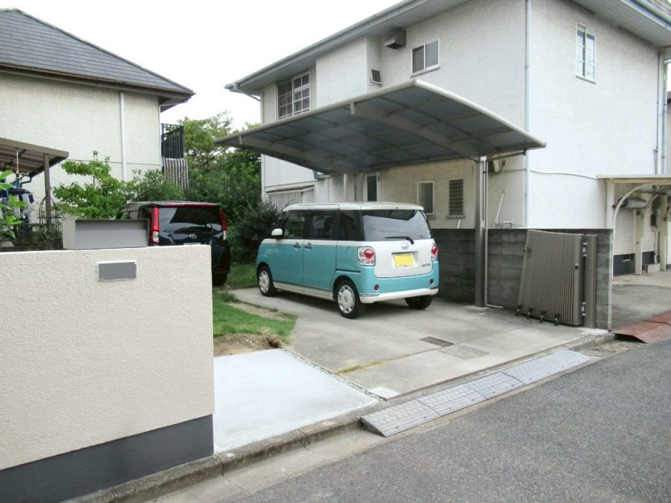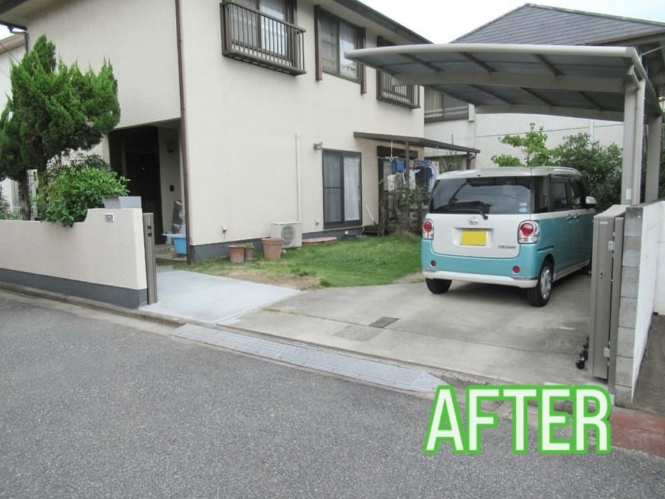 駐車場入り口の階段ステップと壁を撤去し、間口を広げることで、出入りが格段にスムーズになりました🤗